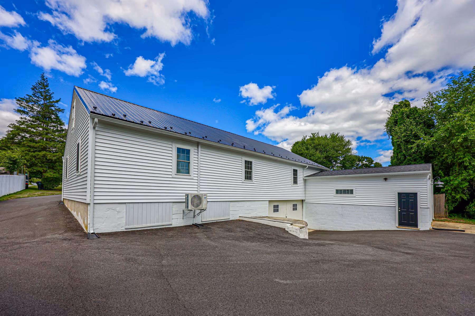 · Installed new James Hardie Board & Batton Fiber Cement Siding (White) on front of building and CertainTeed Monogram Vinyl siding on rest of the building